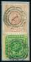 1864. 8 sk. grøn med del af venstre marginal og 4 sk. rød på klip.