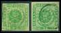 1854. 8 sk. grøn i begge typer.