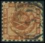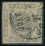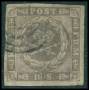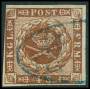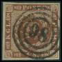 1858. 4 sk. brun pl. III-6 med variant: Pust i stedet for post.