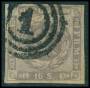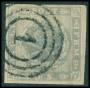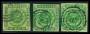 1858. 8 sk. grøn, 3 mærker, der er tæt klipppede/berørt. AFA 3600,-