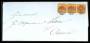 1858. 4 sk. brun i vandret 3-stribe på 3. vægtklassebrev fra Kolding til Odense.