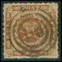1863. 4 sk. brun, lidt rust på bagsiden.