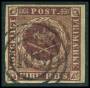 1851. 4 RBS pl. II-66 Ferslew med omv. vm. klippet ind i mærkebilledet foroven. Attest Jørgensen.
