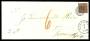 1852. 4 RBS rødbrun tangeret i højre side på brev fra Ringsted til Kjøge, sat i straf med 6 sk. i rødkridt.
