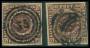 1853. 4 RBS mørk rødbrun pl. II54-55 i vandret par.