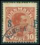 1917. 10 øre rød, kongen med øksehug i toppen af hovedet, sjælden.