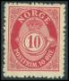 1910. 10 øre rød på tykt gulligt papir.