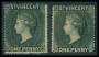 ST. VINCENT. 1862. 6 p. blågrøn i par med marginal lidt brune pletter. Mi. 180 €