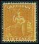 BARBADOS. 1876. 6 p. orangegul uden lim. Mi. 170 €