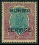 BURMA. Tjeneste. 1937. 1 r. brun/grøn, brunlig lim. SG 42 £
