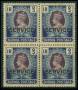 BURMA.1947. 3a.6p. sort/ultramarin i 4-blok med kraftig forskudt overtryk, brunlig lim.