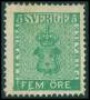1858. 5 øre mørkgrøn. AFA 4200,-
