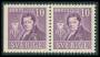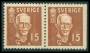 1938. 15 øre brun i BC par i blok. AFA 1750,-