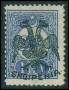1913. 2½ pi. sortbrun delvist blåt overtryk uden garanti. AFA 14000,-