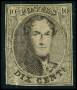1857. 10 c. brun let beklippet i syd og lille tyndhed. AFA 3800,-