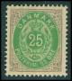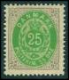 1875. 25 øre grå/grøn uden første A i Danmark, sjælden.
