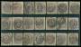 1875. 16 øre grå/brun i antal med bl.a. ramme/ovalfejl m.m.