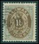 1875. 16 øre grå/brun i antal med ramme/ovalfejl.