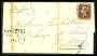 1841. 1 d. brunrød pl. 8: Black plate på brev, mærket med 3 meget brede rande og let klippet i øvre højre side. SG. (7) (plade 8 på brev) 550 £