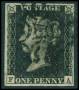 1840. 1 d. sort O-B pl. 6: Retouch.