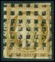 1849-53. 10 c. gulbrun Napoleon og Ceres i 52-blok inkl. téte béche forfalskning(Spiro)