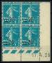 1925. 30/25 c. blå i 4-blok med trykdato. Yvert 175 €