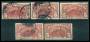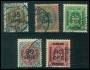 1912+15. 5 kr. posthus x 5 i lidt blandet kvalitet.