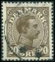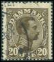 1921. 20 øre brun med variant: Hage på tværstregen i E i øre. AFA 1000,-