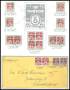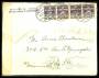 1938. Bølgelinie, 10 Øre, violet (4-stribe). Brev sendt fra BRÆDSTRUP 18.11.41 til Minneapolis i U.S.A. Åbnet af den tyske censur i Berlin og den amerikanske censur i New York. Brevet stemples THIS AR...