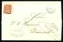 1862. Siddende Helvetia, 30 Centimes, rød. Brev sendt fra BULACH 23.JAN.67