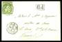 1862. Siddende Helvetia, 40 Centimes, grøn. Brev sendt fra NEUCHÂTEL 3.VIII.64 til Les Ormes i Frankrig. Ankomststemplet LES ORMES 6.AOUT.64. Rundt hjørne NV.