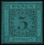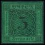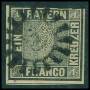 BADEN. 1853. 3 kr. sort, grønlig papir. AFA 3000,-