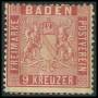 BADEN. 1860. 9 kr. karminrosa. AFA 2500,-