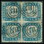 SCHLESWIG-HOLSTEIN. 1864. 1 1/4 sch. blå/rosa i 4-blok, 1 mærke med rift. Ex. LN.