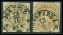 THURN & TAXIS. 1859. Taltype, 1 Kreuzer, grøn (parstykke). Brev sendt fra DARMSTADT 16.6. Annulleret med nummerstempel 104.