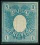 SCHLESWIG-HOLSTEIN. 1850. 1 sch. blå uden lim med tyndhed. AFA 3000,-