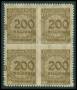 1923. 200 mn. mk. brun i 4-blok med ekstra 0 påtrykt i venstre side.