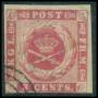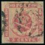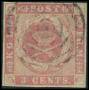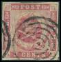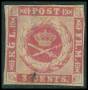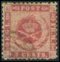 1866. 3 c. karmin, meget svagt stp. minimal rift i venstre side.