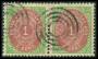 1873. 1 c. tofarvet i par med 5-rings stp.