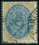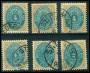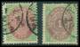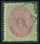 1873. 1 c. grøn/purpurlilla, let stp. og dobbelttak i højre side.