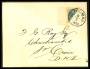 1873. Tofarvet, 5 Cents, 2. tryk, gulgrøn/mørkgrå. Brev sendt fra ST.THOMAS 17.2.1884 til St. Juan i Puerto Rico. Brevet er et 1. vægtklasse brev sendt indenfor nærtakstområdet, der var en afstand på...