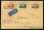 1934. Velgørenhedsmærker, komplet sæt. Rekommanderet luftpostbrev sendt fra SAARBRÜCKEN 2.3.34 til Hamborn. Transitstemplet DÜSSELDORF 2.3.34 og ankomststemplet HAMBORN 2.3.34.