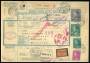 1942. Hitler, 10 Kurona, mørkgrøn og 20 Kurona, mørkviolet med flere. Adressebrev for 1 værdipakke (med hårnet af kunstsilke) sendt fra CHOTIEBORSCH 2.II.44 til København i Danmark. Transitstemplet BE...