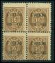 1902. 16 aur brun I GILDI i 4-blok, fejlperforeret, løs i perf. AFA 2000,-+
