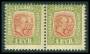 1907. 1 eyr grøn/rød i par med variant: Opstående hårlok i venstre mærke. AFA 600,-