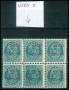 1902. 20 aur blå I GILDI i 6-blok med variant: Uden I foran I GILDI. Facit (61v3) 1600,-