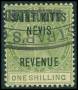 ST. KITTS NEVIS. 1885. 1 sh. oliven med fiskal stp.