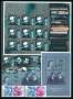 Planche med 6 mærker med blå, røde og grønne stempler, sjældent.
