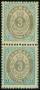 1875. 3 øre blå/grå tryk 13 pos. 85/95 i lodret par med ret og omv. rm.