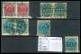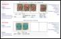 1875. 4 og 8 øre. 2 sider med tryk besatte mærker (uden garanti) blandet kvalitet.